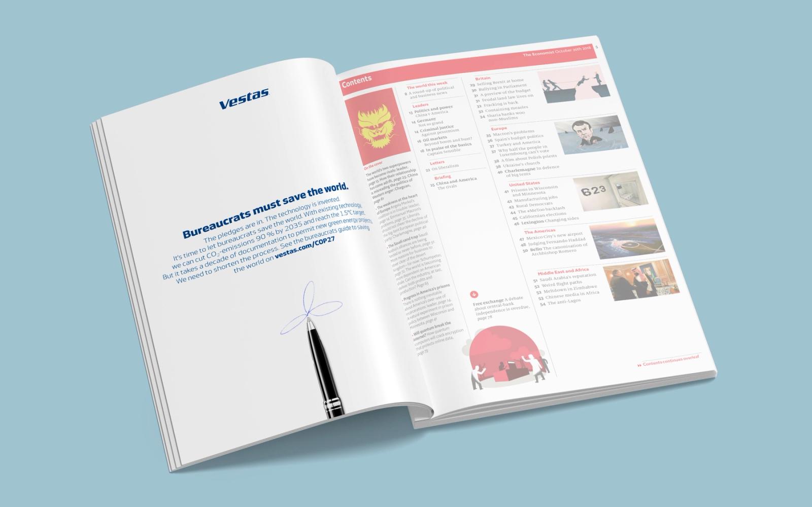 With a 360° campaign — built around a talking paper for Vestas executives — we reached COP attendees through a film, LinkedIn content, and print placements in The Economist (the official COP magazine), along with many other campaign materials.